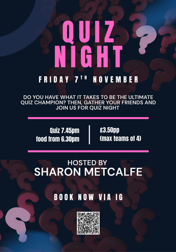 Join us for our second Quiz Night of the off season! Get ready to test your knowledge at our upcoming Quiz Night on Friday on Friday 24th October hosted by Granville & Sue Pugh! The quiz kicks off at 7.45pm sharp, but make sure to arrive early as delicious food will be available from 6.30pm.